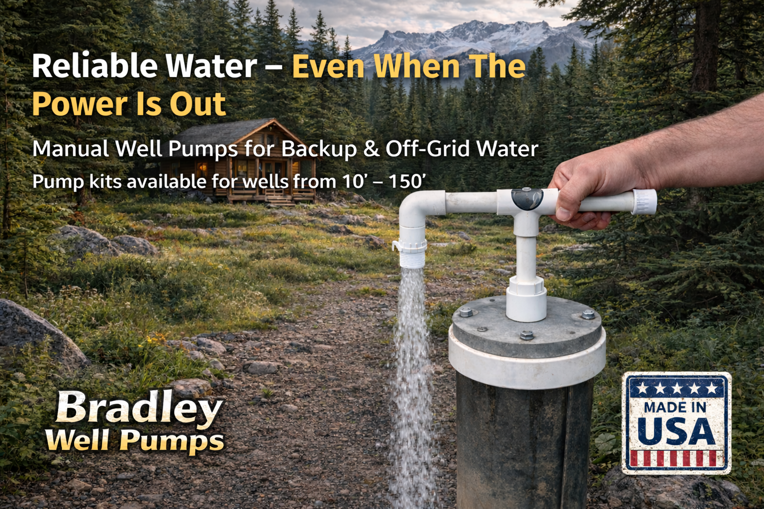Manual Backup Well Pump - Emergency Hand Pump for Deep Wells (Kits available for 10' to 150' Deep)