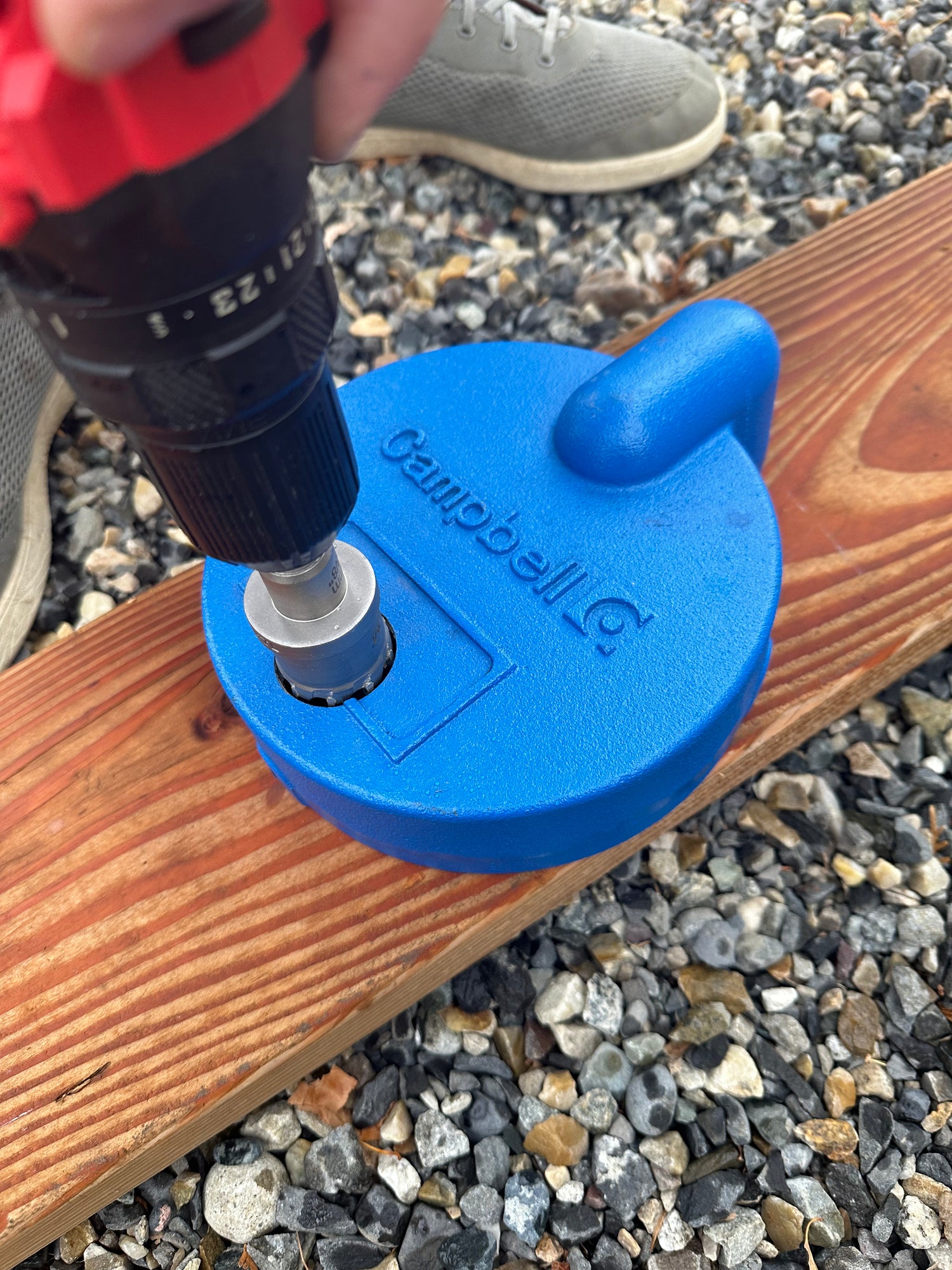 This is easily done using a 1-3/8" hole saw. If the buyer prefers a custom-made well cap with a pre-drilled hole, click the below for details.